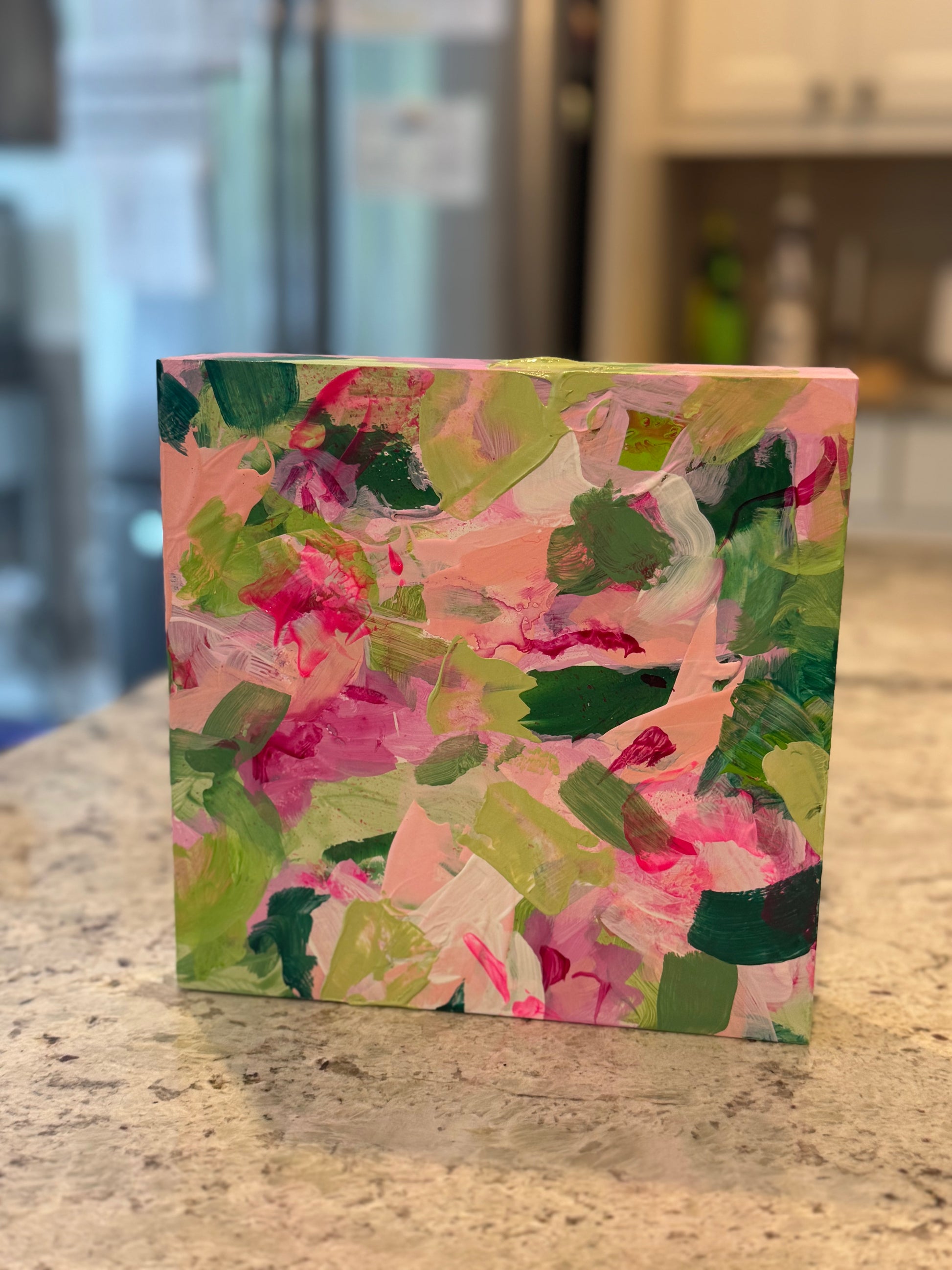 Each piece is 8"x8" on artist panel - perfect for a shelf, gallery wall, or powder room refresh. They can stand on their own or hang.