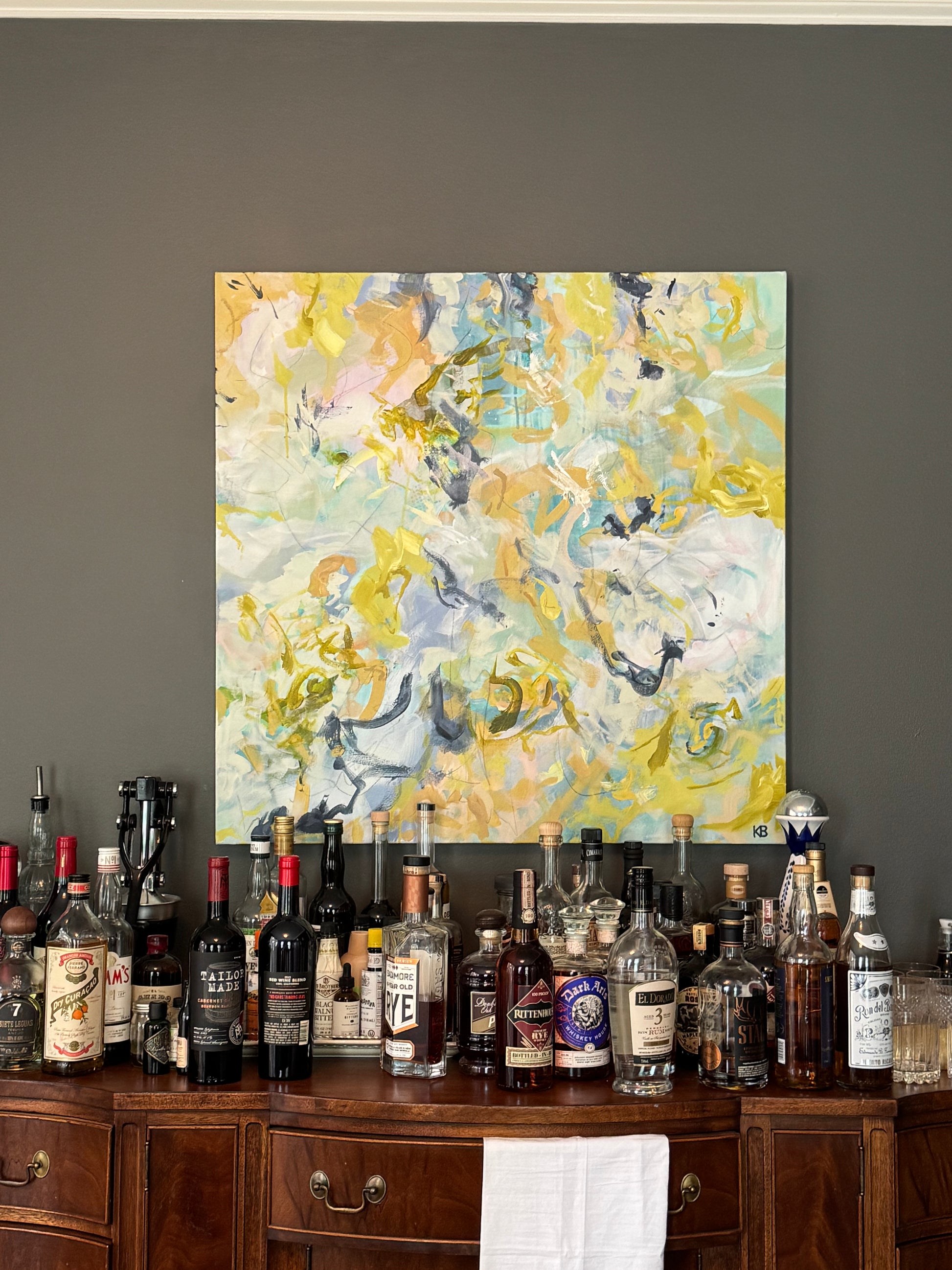 This 36"x36" gallery wrapped canvas is ready to hang, making it the perfect centerpiece for your living room, dining room, or home bar. Its expressive brushstrokes and airy palette lend a timeless sophistication that compliments both modern and traditional interiors.