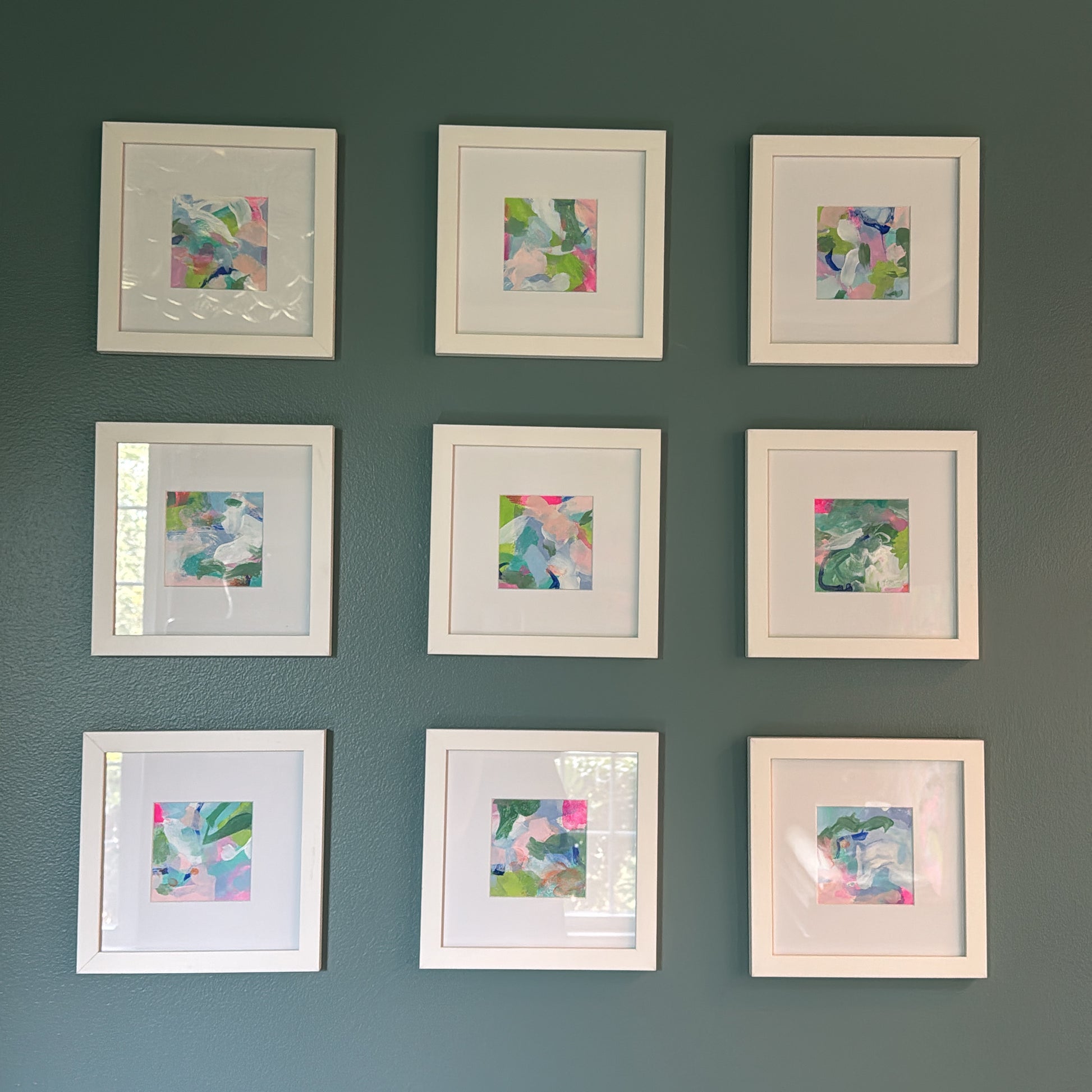 Pocketful of Joy captures vibrant energy in an intimate format. This 4" square acrylic painting features bold, luminous colors applied to paper and presented in a crisp white mat and frame. Perfect for small spaces, gallery walls, or as a thoughtful gift, this petite work delivers maximum visual impact without overwhelming a room. Ready to hang and display immediately.